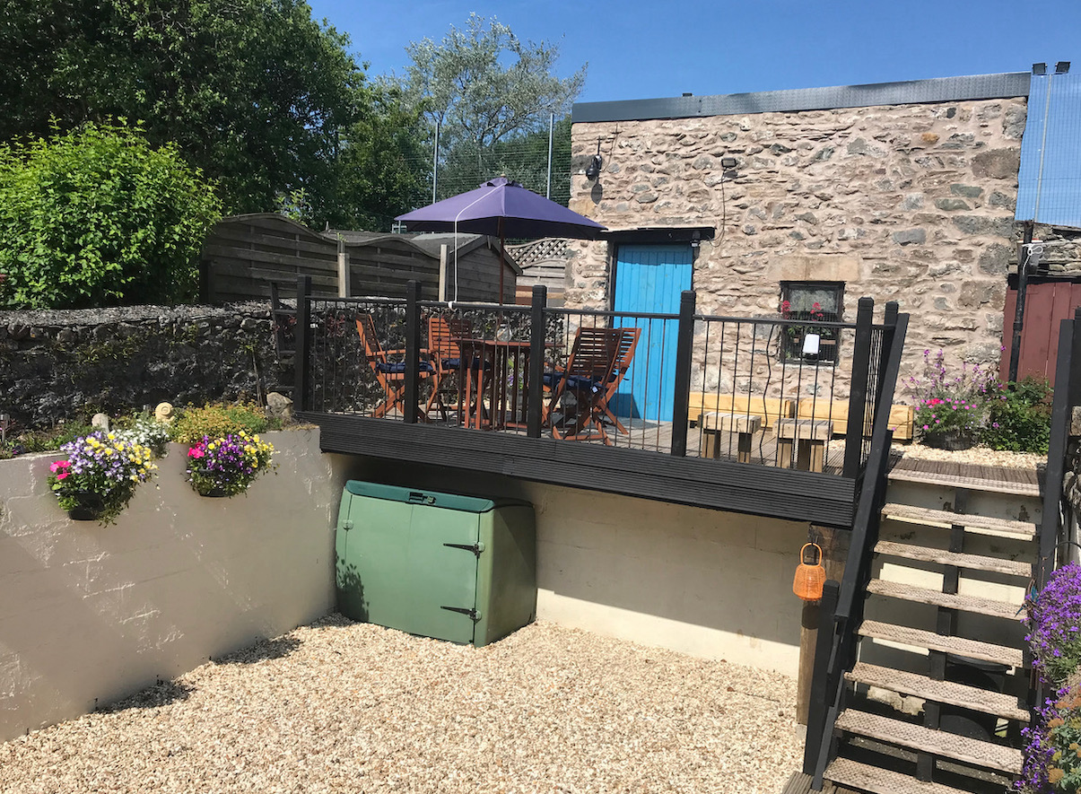 Two sunny outside seating and garden areas. Views over Backgate to the hills from the lovely mezzanine deck.