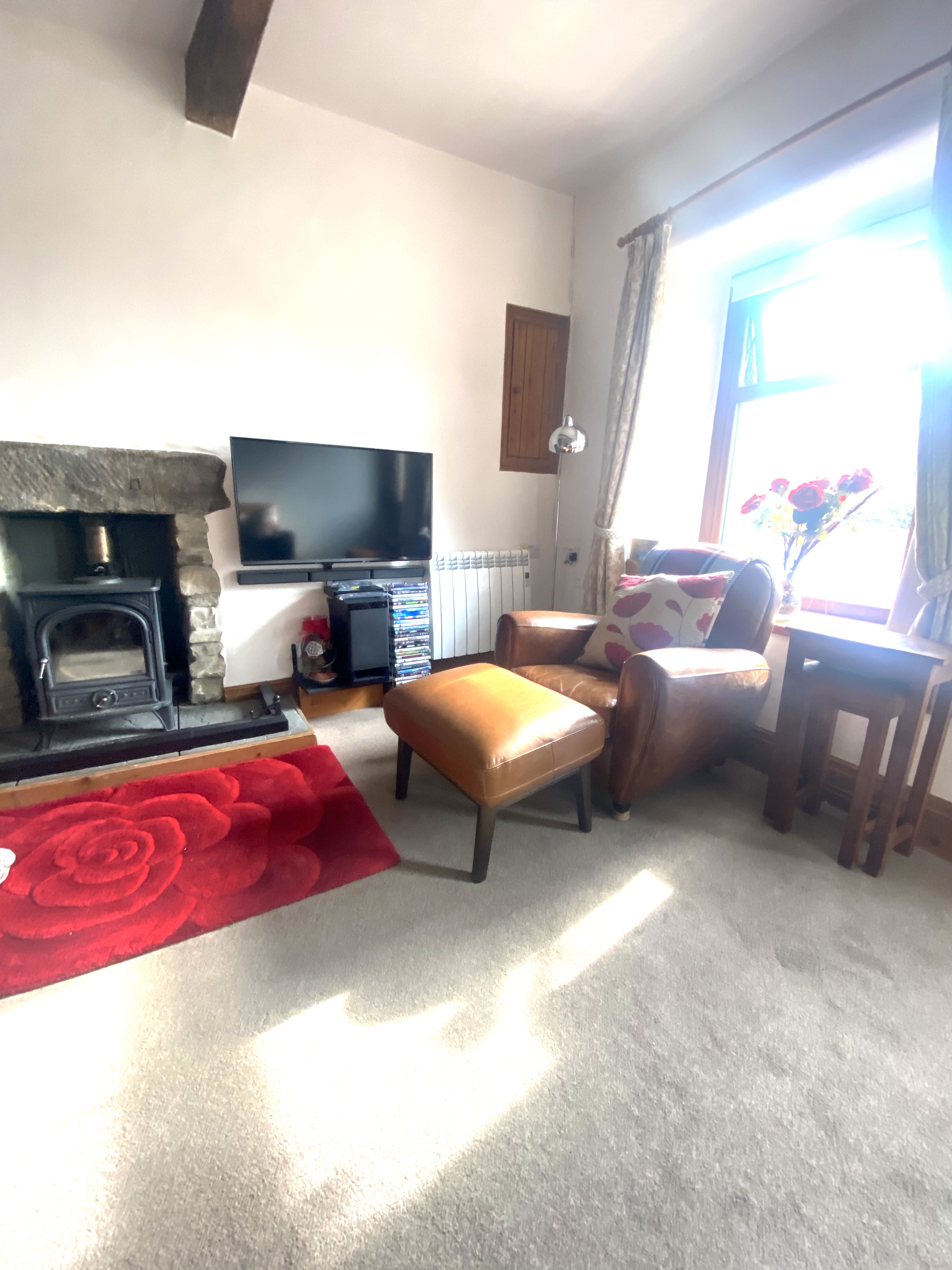 SMART HD TV with surround sound and Bluetooth link and DVD player. Logs provided for the log burner